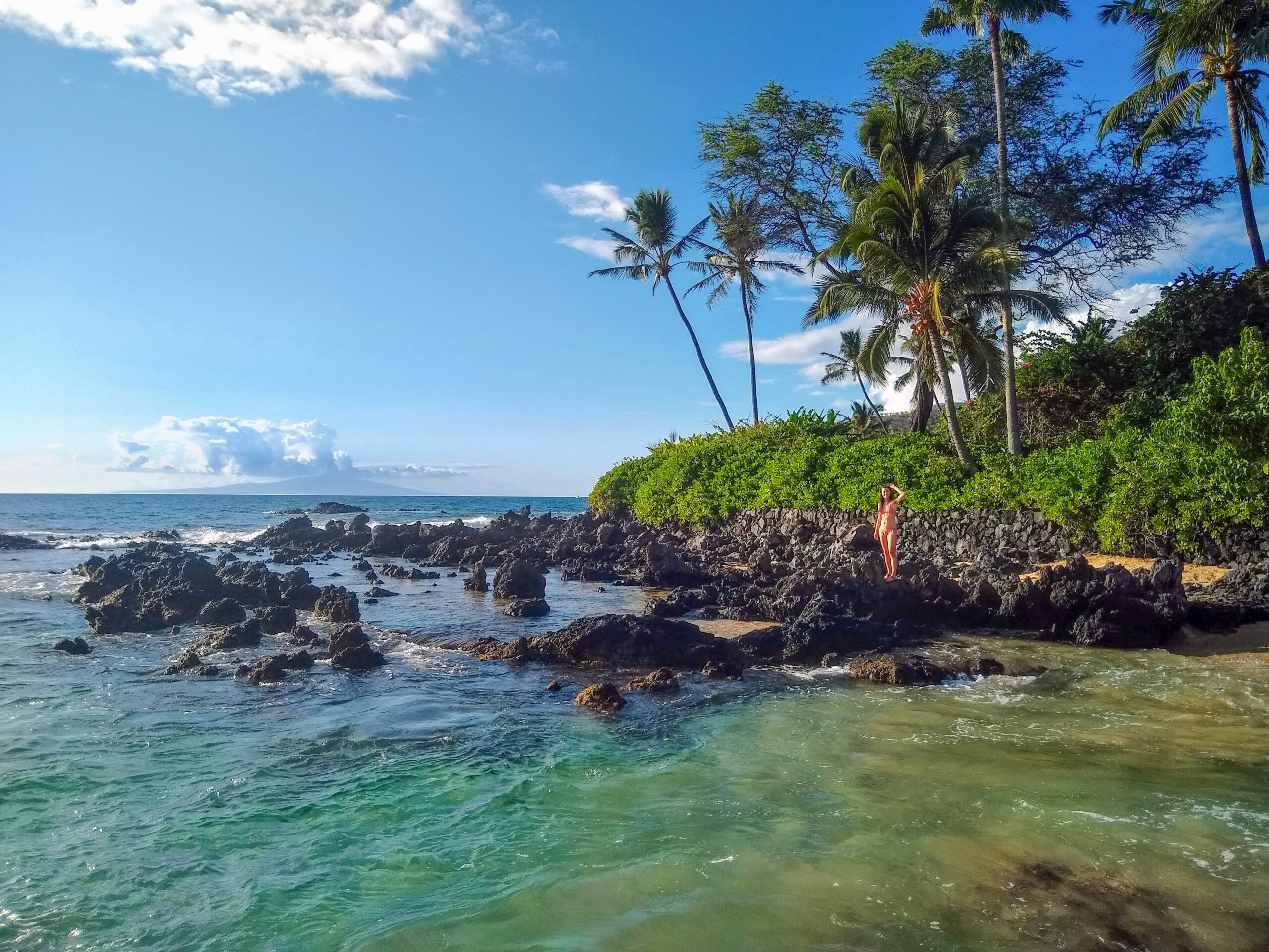 This could definitely go without saying, but there are just so many beautiful beaches in Maui. They are characterized by clear warm water, black lava rocks, various colors of sand, fun waves, and palm trees.
